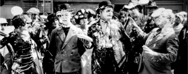 Brand also shows a classic short, The Battle of the Century, which apparently represents the biggest custard pie fight of all time, involving over 3,000 actual pies, hurled in the space of one day on Hal Roach’s “Lot of Fun” at the MGM Studios in Hollywood.