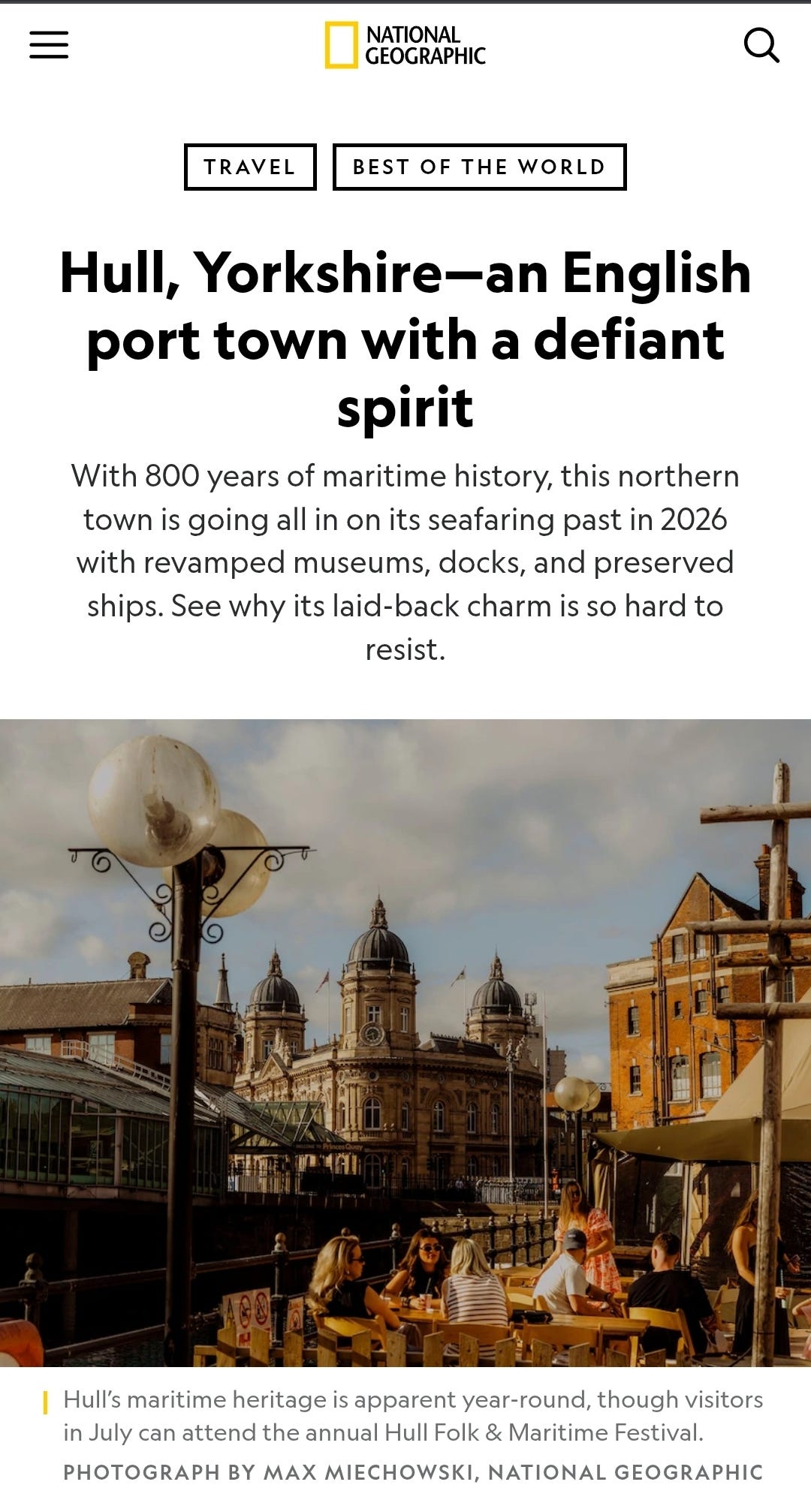 National Geographic has delivered its list of the 25 best places to visit IN THE WORLD. In the World!! Hawaii is in there, as are the Dolomite mountains in Italy. As is Hull. Here’s how the publication sees it. Hoorah!